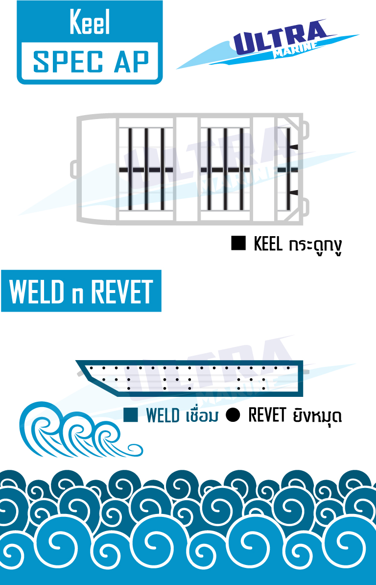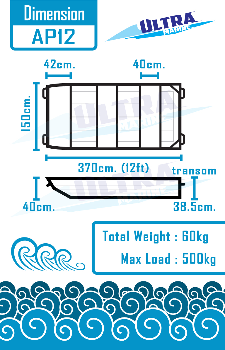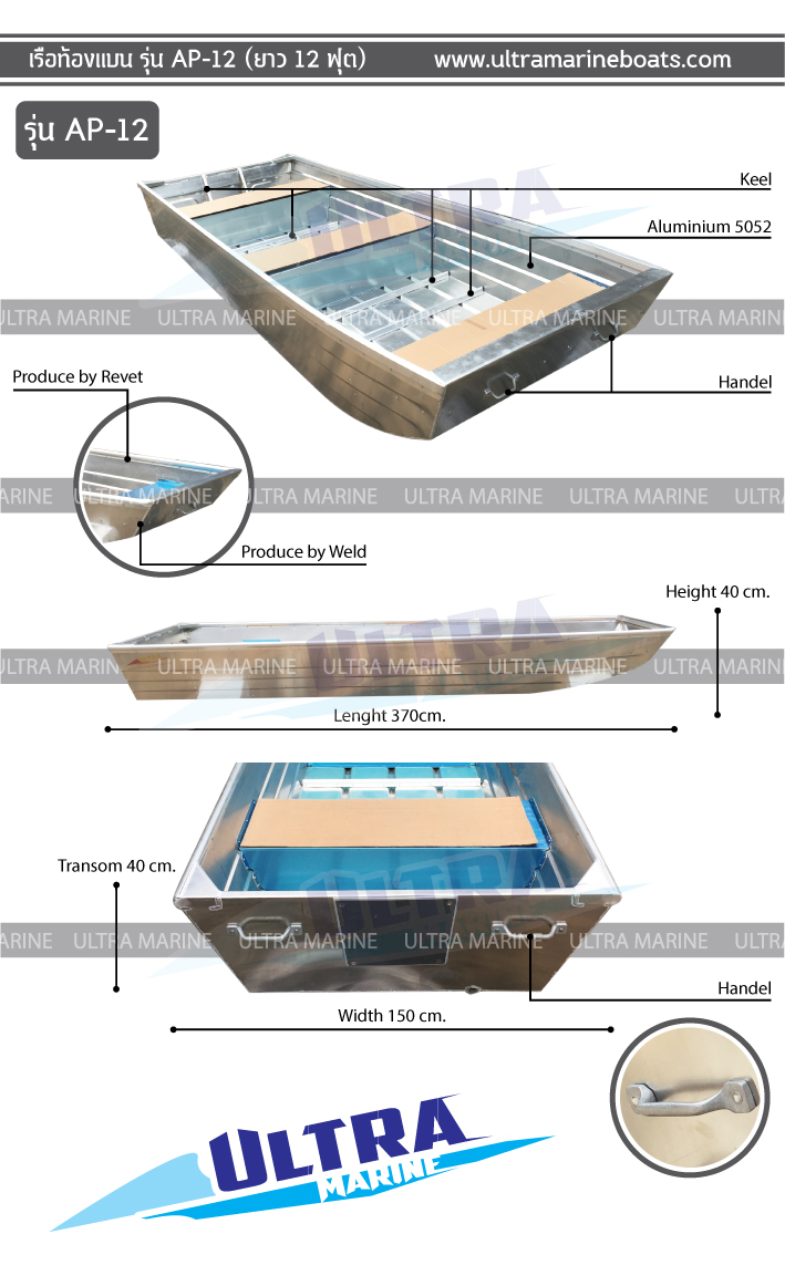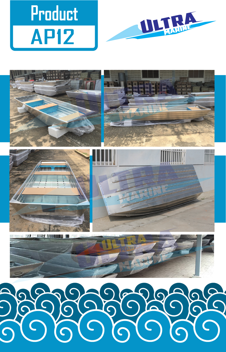 เรืออลูมิเนียม Ultramarine รุ่น AP12 ผลิตด้วยอลูมิเนียมเกรด AA5052 มีความแข็งแรง ทนทาน ราคาถูก ผลิตจากโรงงานที่ได้รับความนิยมในประเทศต่างๆ ทั่วโลก เหมาะกับเรือกู้ภัย เรือตกปลา เรือท่องเที่ยว
